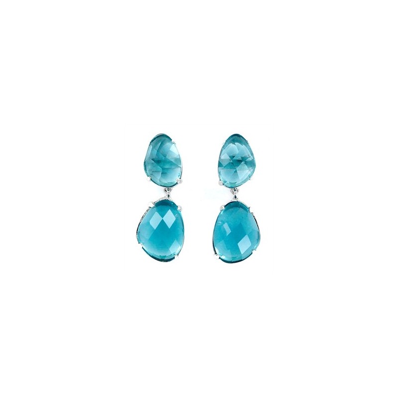Pendiente Queen dos piedras facetadas irregulares garras aguamarina presión