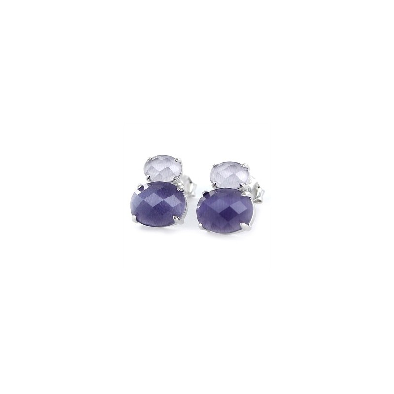 Pendiente Queen óvalos facetados garras malva de 7 mm y morado de 10 mm presión