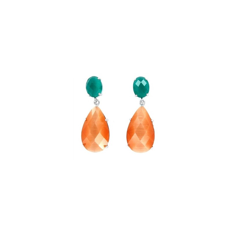 Pendiente Queen óvalo facetado garras verde de 8 mm y gota caramelo de 20 mm