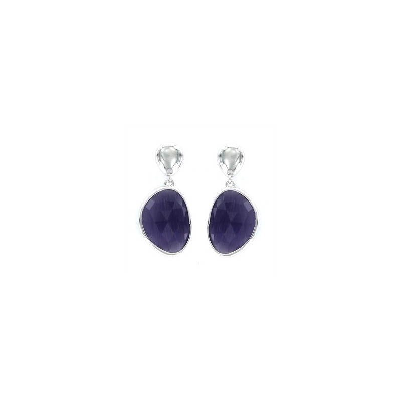 Pendiente Queen gota lisa con piedra facetada irregular azul cierre presión