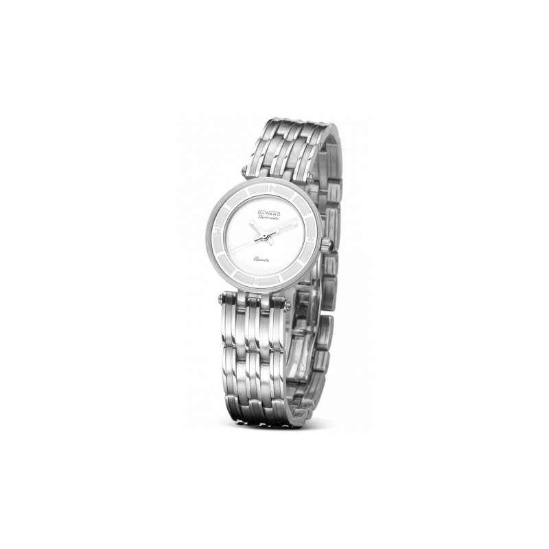 Caja y brazalete de acero con acabado mate/brillo. Maquinaria suiza ESA 902.105 Esfera blanca. cierre oculto
