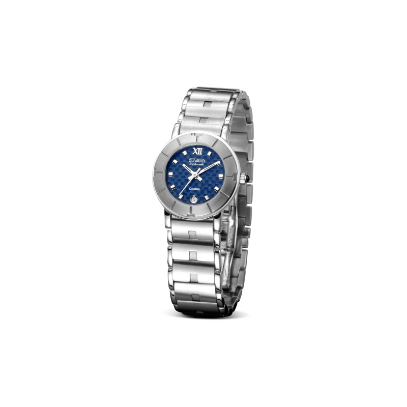 Caja y brazalete de acero en acabado mate/brillo. Maquinaria Suiza ESA 956.114. Esfera azul. Cierre oculto