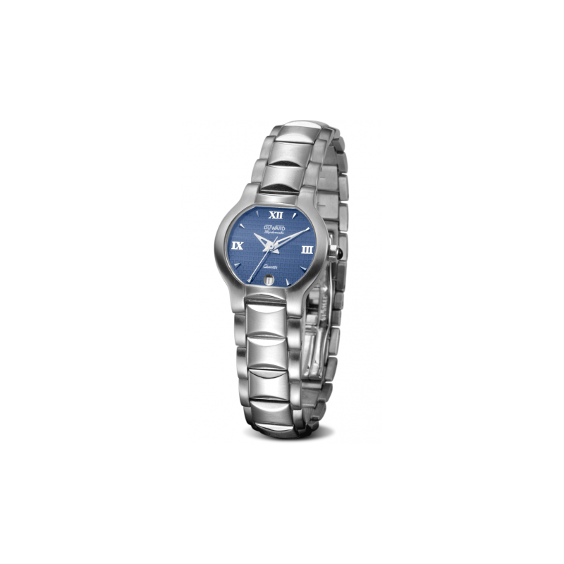 Caja y brazalete de acero en acabado mate/brillo. Maquinaria Suiza ESA 956.114. Esfera azul. Cierre oculto