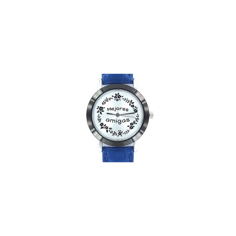 Reloj My Life Mejores Amigas bisel negro de 32 mm y correa piel azul