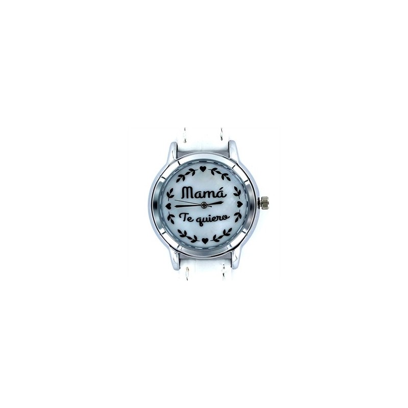 Reloj My Life Mamá Te Quiero esfera nacar de 35 mm y correa piel blanca