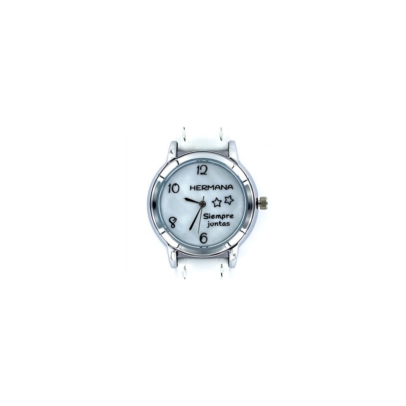 Reloj My Life Hermana Siempre Juntas esfera nacar de 35 mm y correa piel blanca